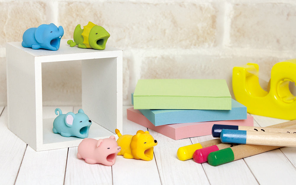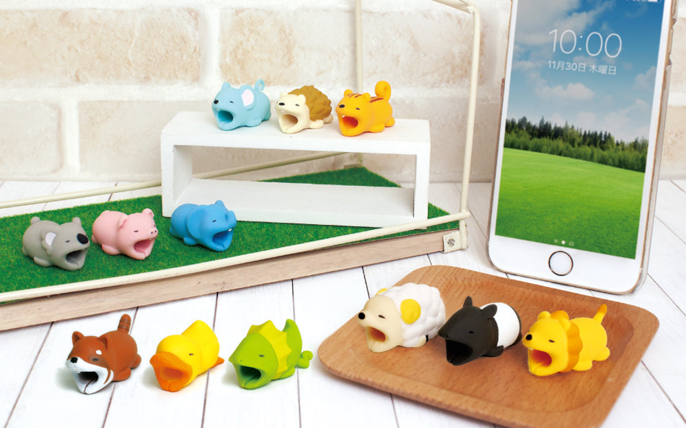 CABLE BITE animals attach to your charging cable and appear to be biting onto your smartphone.